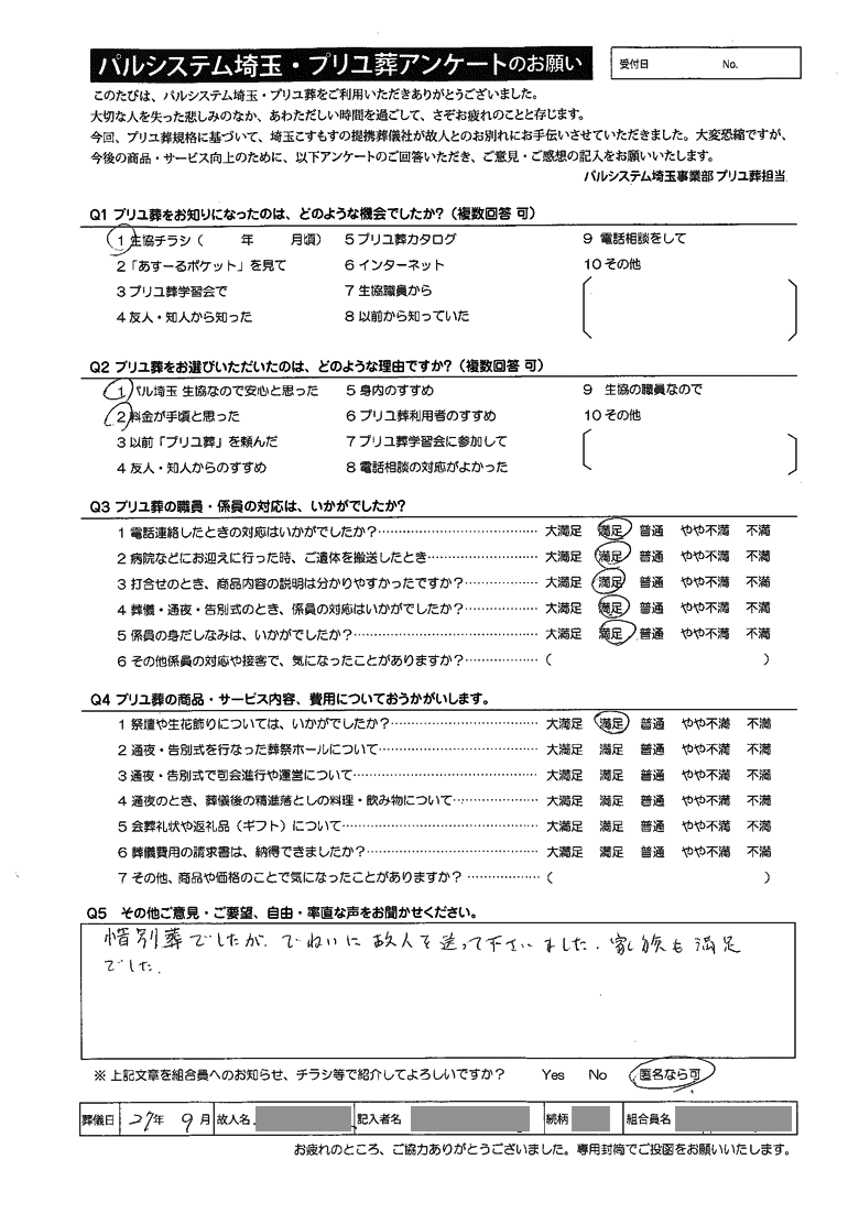 プリユ葬でお葬式を行われた方の感想を一部ご紹介いたします。